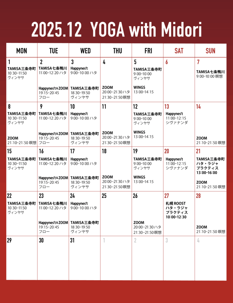日曜 09:00-10:00 瞑想 12/7