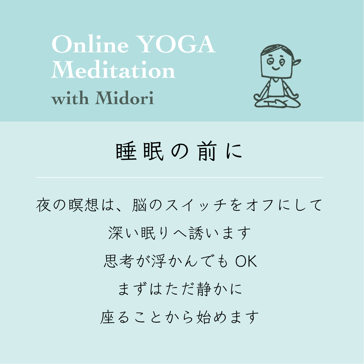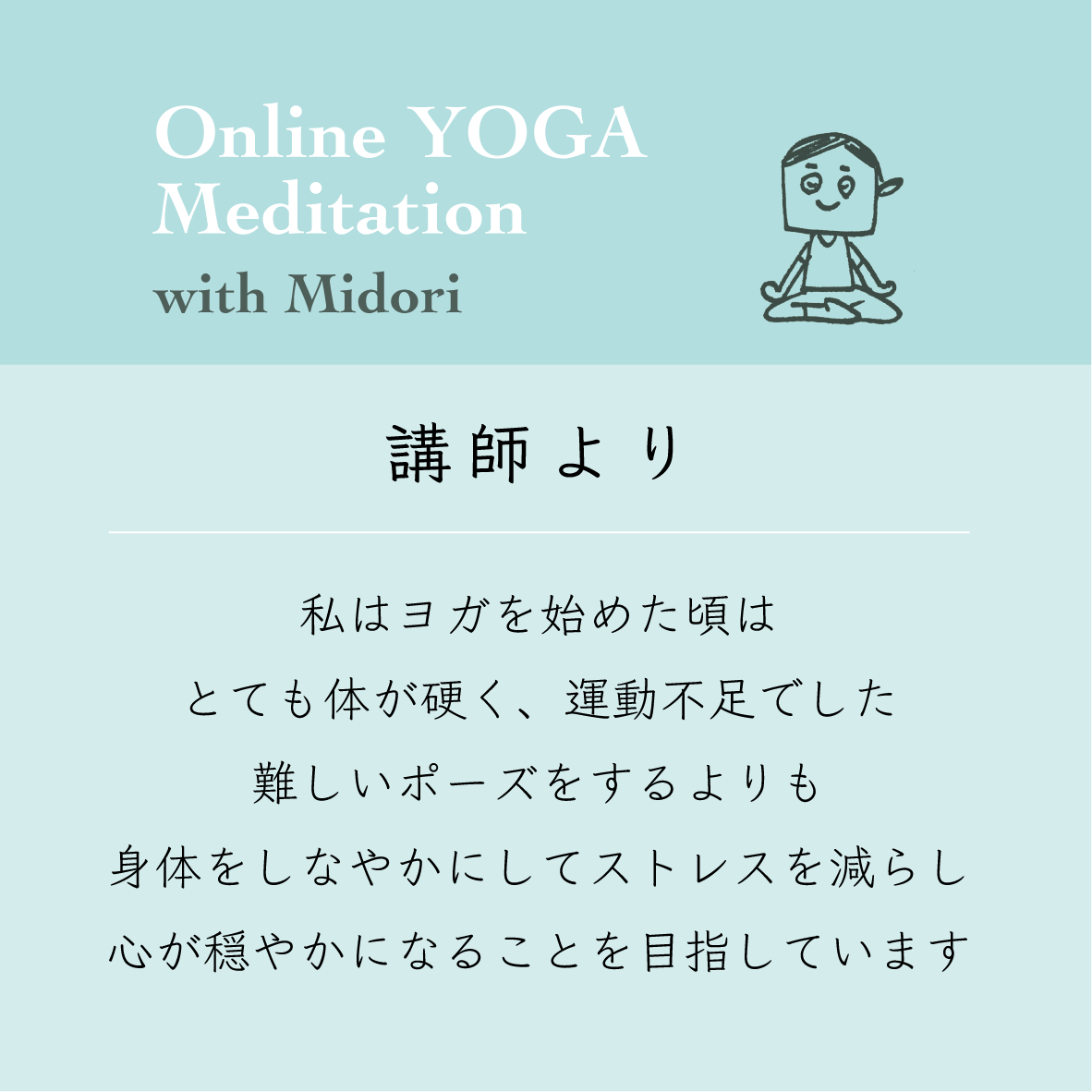 ・30〜40分の瞑想クラスでは、ヨーガの呼吸法と瞑想の練習をします。